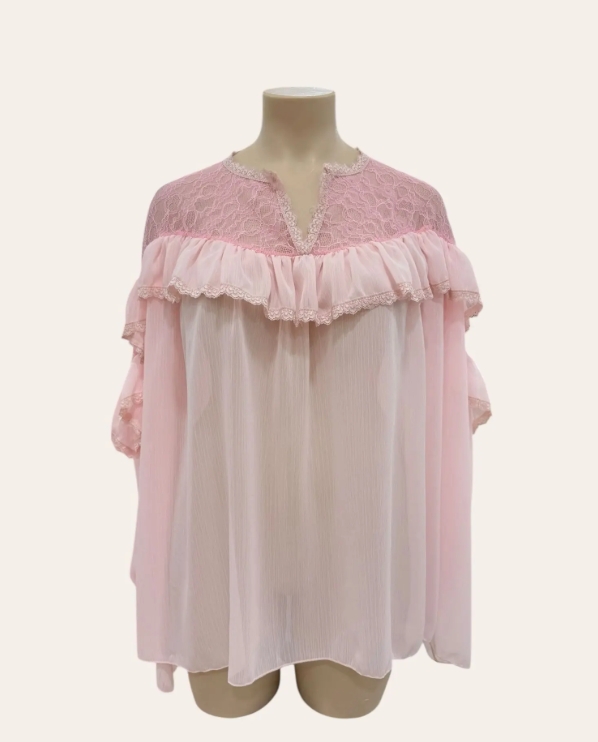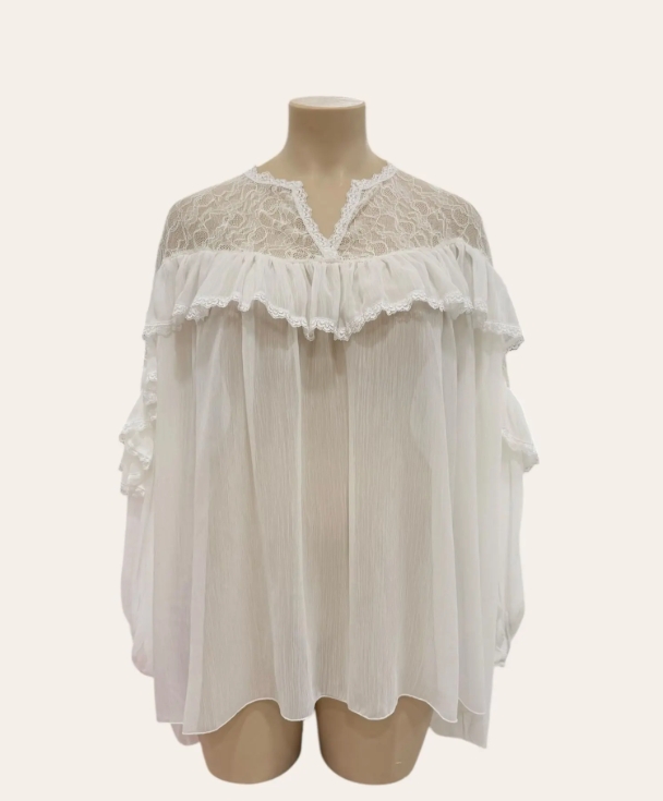 Détails du produit Blouse à manches longues avec délicate dentelle, col en V et fronces. Design fluide et élégant, parfaite pour un look chic. Idéale pour les occasions spéciales, elle apportera une touche de sophistication à votre garde-robe. Composition: Coton (100%) Collection: Printemps/Été 2026